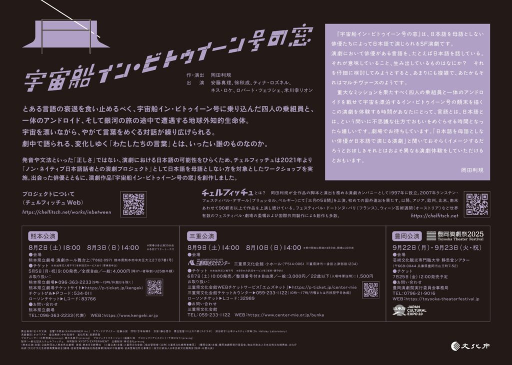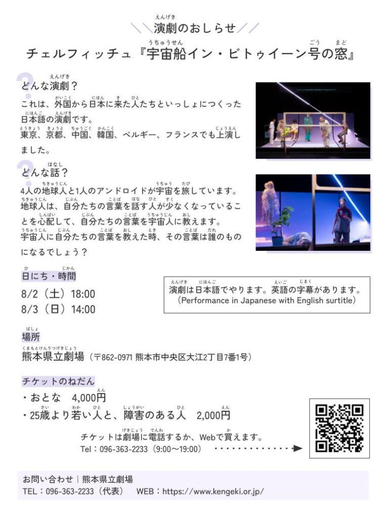 『宇宙船イン・ビトゥイーン号の窓』熊本・三重・豊岡公演 やさしい日本語チラシ(画像は熊本公演)