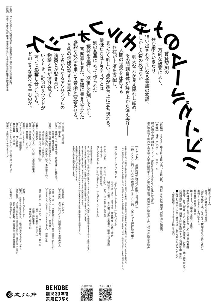 助成:文化庁文化芸術振興費補助金(劇場・音楽堂等機能強化推進事業(地域の中核劇場・音楽堂等活性化事業))独立行政法人日本芸術文化振興会 、公益財団法人朝日新聞文化財団