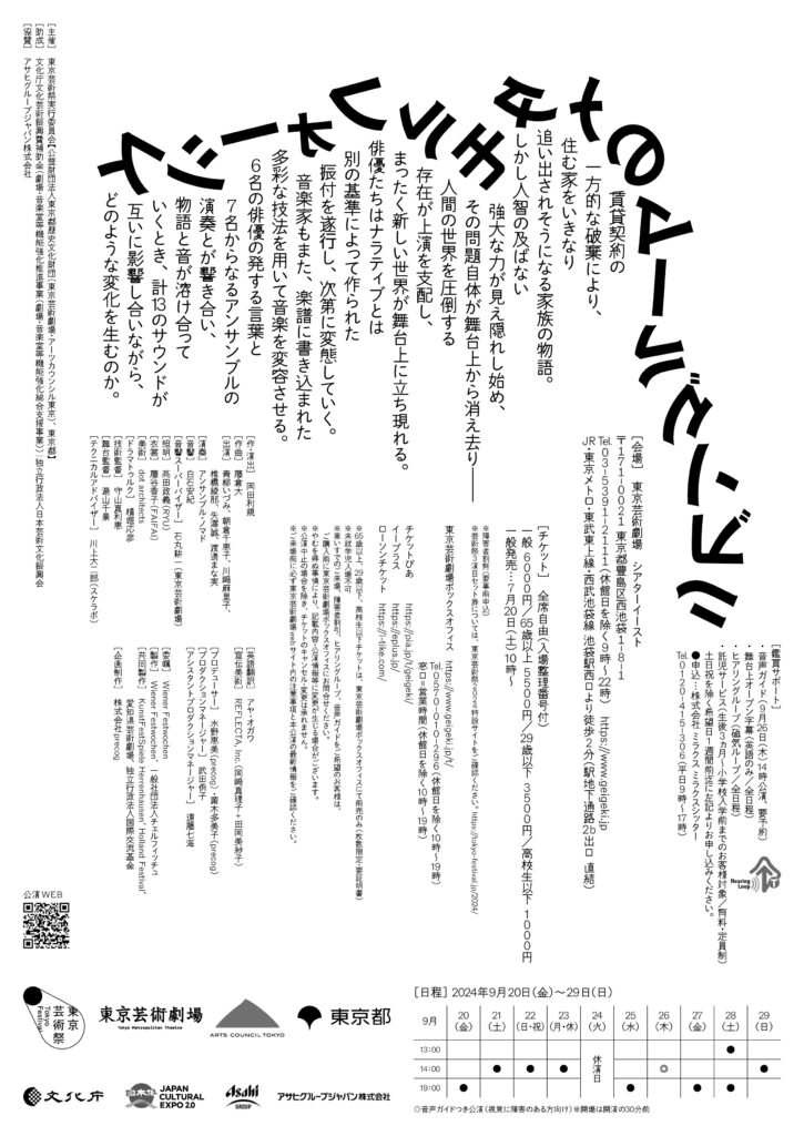 主催:東京芸術祭実⾏委員会[公益財団法⼈東京都歴史⽂化財団(東京芸術劇場・アーツカウンシル東京)、東京都]