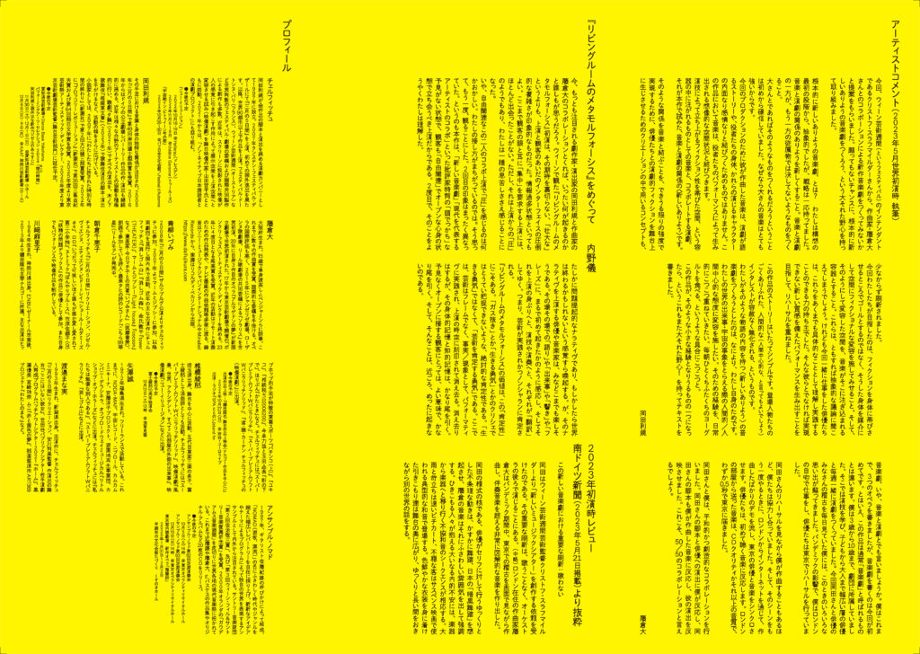 国内初演となった東京公演では、2023年のウィーン初演当時のレビューをSNSなどで発信するとともに当日パンフレットにも掲載。当日パンフレットについては、公演会場ごとの文脈を踏まえ、それぞれ異なる執筆者の寄稿を掲載し、作品鑑賞のヒントとなるような資料も合わせて配布しました。